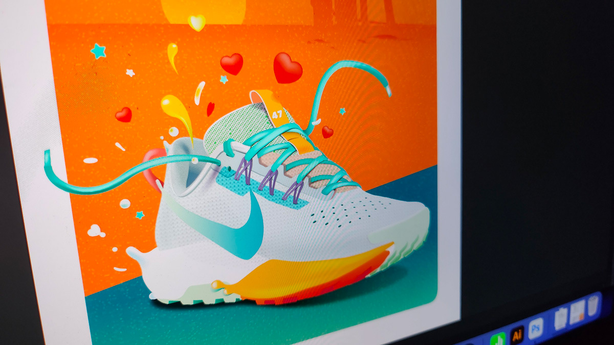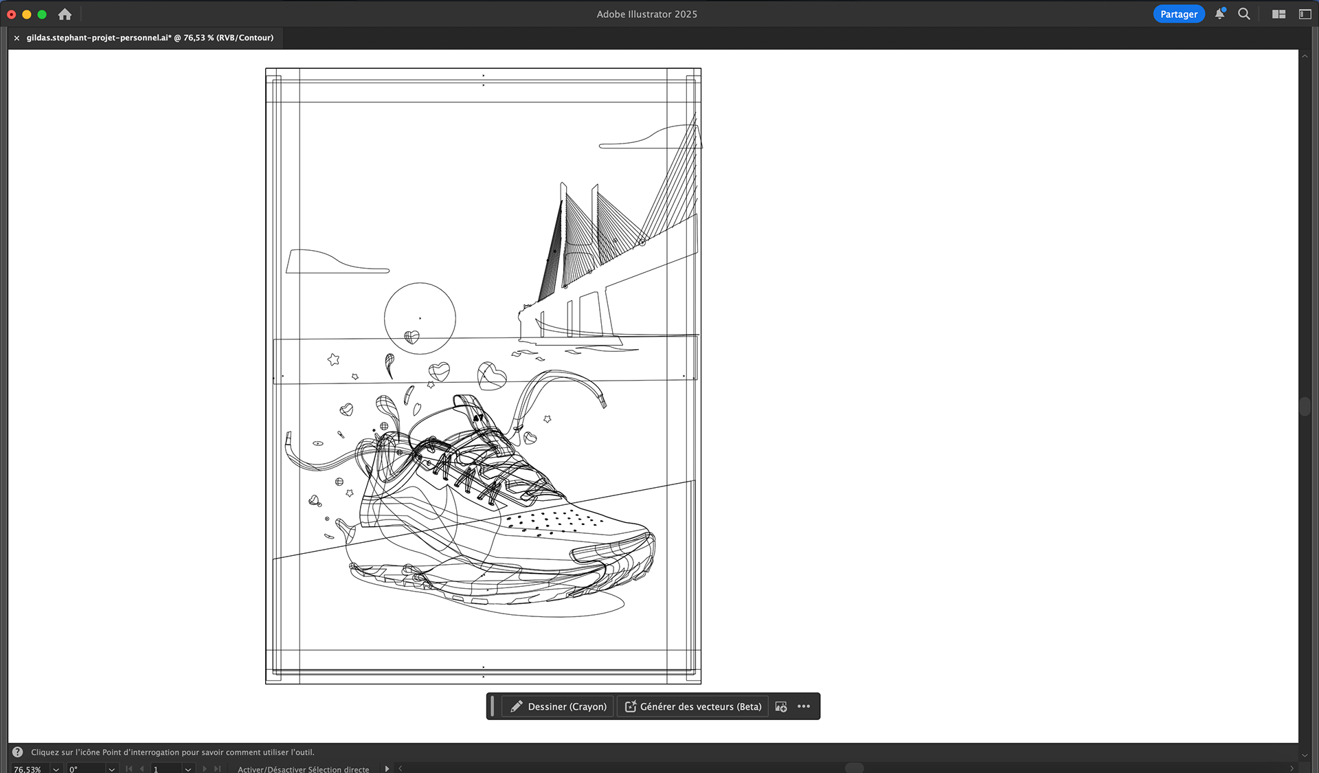 Illustration vectorielle sous Adobe Illustrator avec utilisation des dégradés filaires.